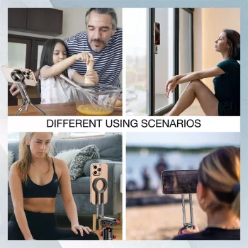 Dual-Sided Magnetic Phone Tripod Stand with Adjustable Height for iPhone & Android