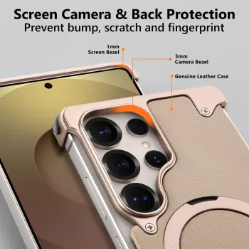 Galaxy S25 Ultra Leather Case with 360° Magnetic Kickstand & Wireless Charging