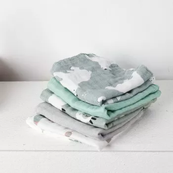 Soft Baby Muslin Washcloths 5 Pack – Bamboo Cotton Face & Bath Towels