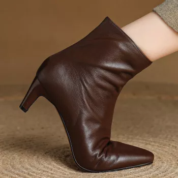 Women's Genuine Leather Pointed Toe Side Zip High Heel Ankle Boots